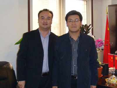 城关区委书记王明寿(右)与兰州新东方学校校长孔建龙亲切合影