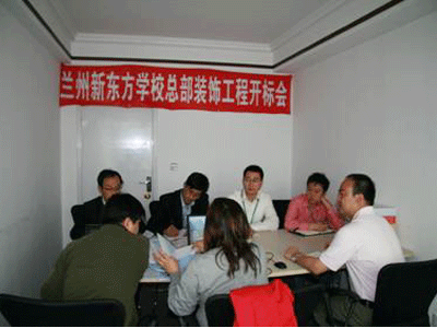 4月20日,兰州新东方学校总部装修招投标会议圆满结束。甘肃宝鼎装饰工程公司最终中标。兰州新东方学校校长孔建龙、新东方教育科技集团审计监察部陈吉祥、总裁办闫明琦以及兰州新东方学校工程领导小组成员参加了会议。