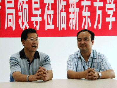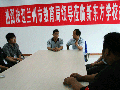 在兰州新东方学校开业的前夕,兰州市教育局局长王有伟在兰州市新东方学校校长孔建龙的陪同下,视察了兰州新东方学校。
