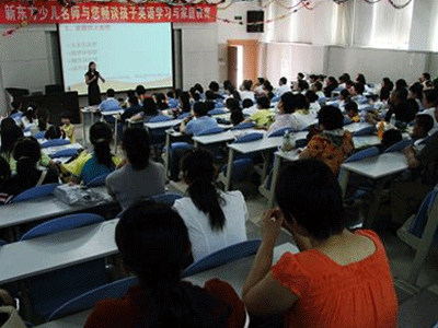 应兰州新东方学校的邀请,新东方教育科技集团泡泡少儿英语全国推广管理中心主任谢琴老师和教学督导苏颖昕老师不辞辛苦,刚刚结束在大连的全国培训师会议就飞抵金城。数百名兰州家长带着孩子,顶着烈日分批来到兰州实验小学学术报告厅聆听专家答疑解惑。