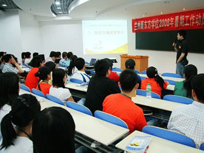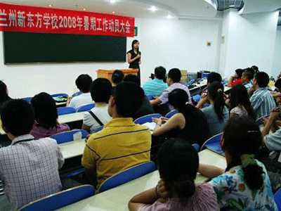 6月28日,兰州新东方开课的前一天,为了以优质的服务、舒适的环境、最佳的质量迎接广大学员,打好暑期战役,19时,兰州新东方45位员工在总部3楼刚刚装修完毕的多功能教室隆重召开2008年暑期工作动员大会。正在兰州进行家长讲座的集团POP少儿管理中心主任谢琴、教学督导苏颖昕两位老师也应邀参加了会议。