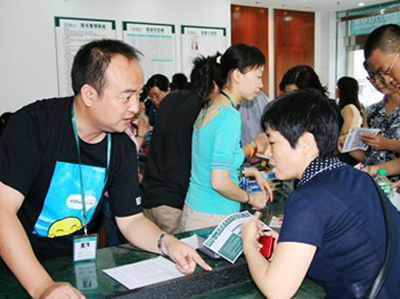 在报名大厅门外,宣传资料的发放工作始终有秩序地持续着。很多路人拿着资料仔细翻阅,并争相向工作人员咨询有关报名事项。