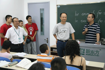 7月26日,新东方教育科技集团暑期工作指导小组成员——集团短语系统综合管理办公室主任屈建民、西安新东方学校校长邓弘在兰州新东方学校校长孔建龙的陪同下,慰问了不畏酷暑前来兰州新东方学习的学员和辛勤奋战在一线的教师们。