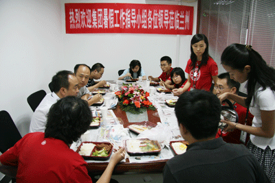 中午时分,慰问团领导一行又一起与员工们端起盒饭,一边有滋有味地享用,一边和大家交流,集团领导们的亲切关怀温暖了每一位兰州新东方员工的心。