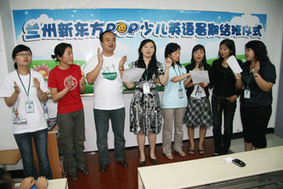 最后,参加此次仪式的小学们和全体少儿老师依依不舍地在兰州新东方学校总部门前合影留念。