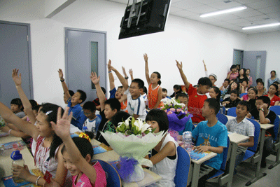 稚嫩的脸庞绽放出花样的笑容,多彩的节目表达着收获的喜悦。8月9日16:30,兰州新东方POP少儿英语首期暑期结班仪式在305教室举行。少儿部的全体老师与来自6个班级的150多名学员及家长们齐聚一堂,在池道老师的主持下,大家共联欢,同开怀,度过了令人难忘的1个多小时快乐的时光。