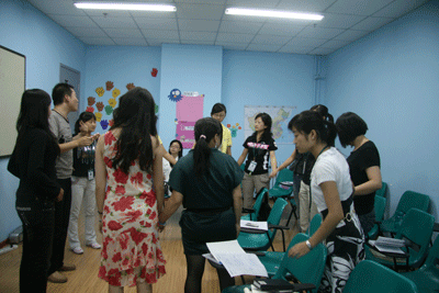 接下来,按照惯例,由各位骨干教师的进行亮点课程展示。王艺潼老师温文尔雅的授课仪态,徐科老师生动活泼的课堂气氛,张奥坤老师灵活多样的启发教学,还有李娜老师精彩新颖的多媒体课堂演绎,令新老师们受益匪浅。之后,POP的新成员苏明山老师,也是唯一的男老师,通过自己精彩的表现感染了在座的每位老师。丰富的课堂用语,有趣的游戏设计,活而不乱的课堂秩序,都为他的这次展示增色不少。