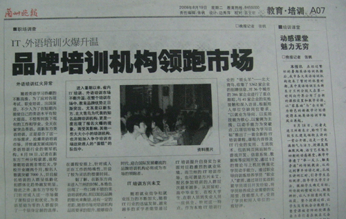 进入暑期以来,省内IT培训、外语培训市场不断升温。在整个培训市场中,教育品牌优势正日渐突出。尤其是以新东方、北大青鸟为代表的知名品牌培训机构,更是一度出现了报名火爆的现象。而受其影响,其他一些大大小小的培训机构,也开始加入争夺培训市场这块诱人的“蛋糕”的队伍中。