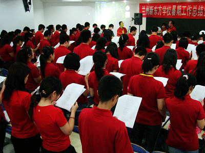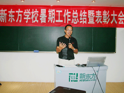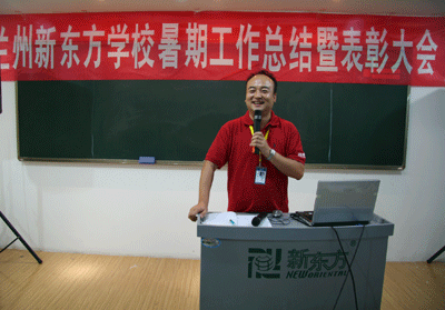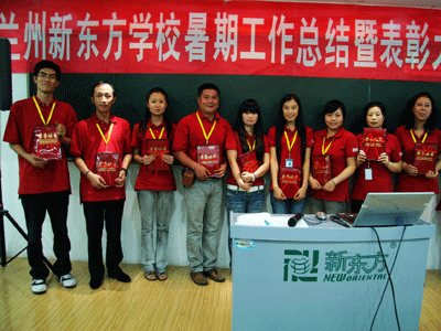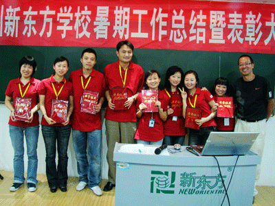 在暑期教学工作稍告段落的8月31日,在结束了一整天课程的晚上7点30分,兰州新东方学校全体员工在302教室隆重举行2008年暑期工作总结暨表彰大会。平时大家由于在不同的楼层、各自的岗位忙碌于本职工作,谋面与交流机会甚少,此次大家身着红色的校服,齐聚一堂,其乐融融。彼此间有的已是久违,有的则似曾相识。大会历时4个多小时,现场异彩纷呈、妙语连连,掌声与笑声不绝于耳,感动与泪水时起涟漪。