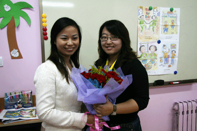兰州新东方POP少儿英语这个年轻,团结,奋进,富有朝气的团队从早期的三四个人发展壮大到目前的二十一个人,正处在一个建设成熟团队的关键时期。凭借暑期工作的优秀表现,兰州新东方POP少儿英语被集体授予2008年暑期“优秀团队”的称号。谢琴老师非常关心地询问了老师们的工作、生活情况,鼓励大家在保证身体的情况下,再接再厉,取得更大的成绩。接着,谢琴老师就下一阶段POP工作的开展重点提出相关指导。