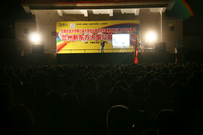 19:30,满月初上。8000名农大学子在凉凉的秋风中翘首迎来新东方名师们的激情开讲。讲座开始前,甘肃农业大学团委书记张岁玲发表了热情洋溢的欢迎词。随后,新东方名师悉数登台。皎洁的月光下,8000名学子心中那盏希望的明灯被逐一点亮,对梦想的呐喊越过高高的山垣响彻夜空。