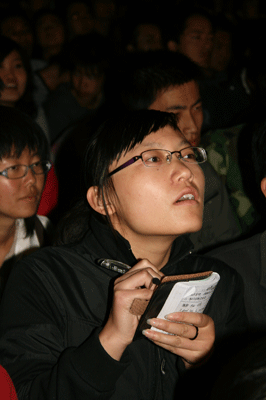 被誉为“新东方赵本山”的考试部杨村老师走上台,他的讲座内容分为三个方面:首先,在一定的时间内,钻精钻透一本英语教材;第二,英语学习是一个漫长而艰苦的过程,只有坚持才能取得成功;第三,只有量的积累,才会实现质的突破,这就是英语学习“质、量互变规律”。杨老师的举手投足和一言一句个性鲜明、诙谐洒脱令整个现场充满了轻松的幽默和快乐气氛。