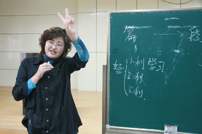 被誉为“新东方赵本山”的杨村老师以他独特的气质和幽默的语言吸引了大批同学前来聆听讲座。从李阳持之以恒学习英语的最清晰、最大声、最快速,到张海迪阿姨在轮椅上每天坚持不懈学习掌握英语、日语、俄语、德语等四门外语,直到以厨师身份通过四级、六级,最后博取老托福637分的张师傅,杨村老师透过每个故事主人公成功学好英语的共同点——英语学习要持之以恒,告诉大家学习英语是没有任何捷径的,只有始终坚持,从不懈怠,英语学习才能有所收获;而且,只有坚持,各种各样的英语学习方法才能起到作用。杨村老师让兰州理工大的学子们感受到了新东方老师别样的授课风格。对于学子们关心的在两个多月时间里该怎么复习英语四级考试的问题,杨村老师基于“2080”原则的成功理论,提出了他的“三一论”:每天至少学习一小时,认真看透一本书,反复听读一盘磁带。令在座的同学们受益匪浅,纷纷表示认同。