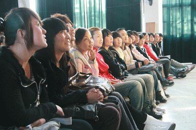 杨村老师从学习英语的态度和方法入手,他告诉同学们学习英语要坚持、坚持再坚持,每一天都不能放弃对英语的学习,只有持之以恒才能有所收获,切勿三天打鱼两天晒网;而且,坚持是各种各样的学习方法与学习技巧的基本所在。他幽默的言语,浓郁的东北味,惹得台下掌声不断。而富含哲理的故事,真诚的交流,又使大家在欢笑中能够有所思考和收获。