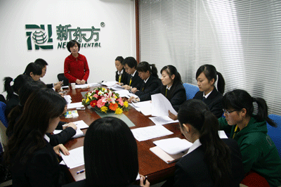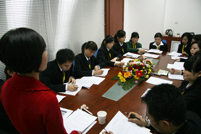 兰州新东方学校已经在广大金城市民心目中树立起了首屈一指的一流培训机构形象,随着集团“服务与营销”战略步入了快车道,兰州新东方更需要在服务和营销水平上敢于创新、努力提升。作为学校与家长、学生沟通交流的前沿团队,兰州新东方客户服务部采取了一系列举措提高整体服务素质,以树立亲和、专业、高效的新东方品牌形象。2008年11月4日,招商银行金葵花客户经理张晓欣老师应邀走进兰州新东方学校,给客服部人员进行了首期礼仪培训。人力资源部朱丽华老师列席参加。