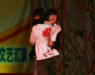 精彩的文艺表演过程中,晚会又突破地域、飞越时空,穿插了各种精心制作的视频展示。有集团领导俞老师和陈向东老师发来的慰问,有兰州新东方外地教职员工家属寄予的问候,有POP少儿家长殷切的期盼,有石家山新东方抗震希望小学孩子们的深深谢意和祝福,还有幽默的“新东方广告展播”。视频板块不仅活跃了现场气氛,也以新的方式让每个人从不同角度感受着新东方的真挚情感与独特魅力。