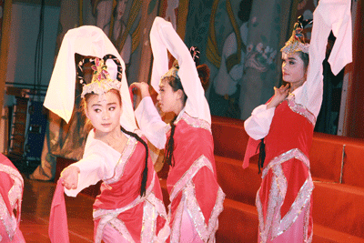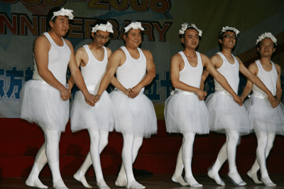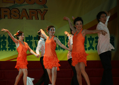 简短、热烈的致辞和庆典仪式结束后,文艺表演正式开始。整台晚会以梦想、欢乐、感恩为主题,温馨而热烈。精彩的节目分别来自兰州新东方的各部门,新老教师同台亮相,歌曲舞蹈异彩纷呈。歌曲《春泥》气息清新,演唱水准不亚于专业,赢得粉丝团惊声尖叫;歌舞剧《我们的回忆》将大家带入了纯真的学生时光。市场部的芭“雷”舞《天鹅湖》从出场亮相的那一刻便使全场暴笑雷动、人仰马翻;男女声合唱《你最珍贵》旋律优美,真情流露。手语舞蹈《爱》节奏明快,动感十足。《卓玛》、《新疆民歌》令观众们领略了浓郁的民族风情。舞蹈《感恩的心》表达出全体新东方人最真挚的感怀与谢意。温泉老师的《头发乱了》不仅将张学友的歌声模仿得惟妙惟肖,也牵动着台下观众兴奋的神经一起舞动。谷峪老师的歌曲串烧尽显其多才多艺、游刃有余的舞台功底。 欣赏完POP老师们《JAMBALAYA》的婀娜舞姿,再感受一下行政后勤部的阳刚武术,威猛的长拳虎虎生风,精湛的刀术招招行云,令全场观众惊叹不已。晚会还特别准备了富有新东方特色的英文节目板块:Logan的独唱《Better man》,古丽扎与Stone《狮子王》现场配音然他们的粉丝团大呼过瘾合作。梦幻的舞台效果和炫动的演出紧紧抓住了观众、粉丝团和POP小学员们的眼睛,他们始终挥舞着手中的响板,配以高分贝的掌声、欢呼声,让现场气氛跌宕起伏,高潮不断。大家纷纷感慨兰州新东方真是“群星璀璨”,“藏龙卧虎”。