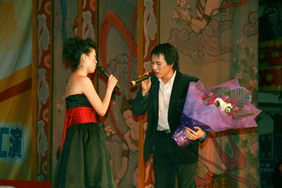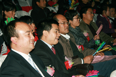 晚会中间还进行了隆重的抽奖仪式。共青团甘肃省委副书记张旭晨、城关区教育局局长张军、副局长高岭上台抽取了六位现场幸运观众,并为他们颁发了由俞老师亲笔签名的精美套装图书大礼盒。张军局长精彩致辞后,应全场观众的热烈请求,共青团甘肃省委副书记张旭晨先生一展歌喉,为大家演唱了拿手的《滚滚长江东逝水》,博得了满堂彩。