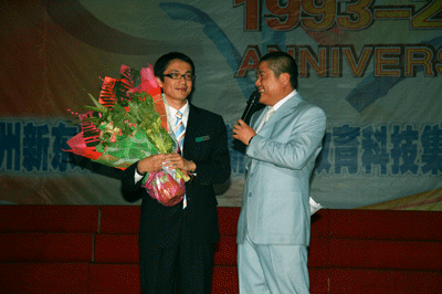 舞蹈结束后,兰州新东方学校校长孔建龙登台致辞。孔校长首先向参加晚会的各位嘉宾、学员、家长以及教职员工家属表示了热烈的欢迎。孔校长在致辞中说,新东方在15年的发展历程中,充满了欢笑与泪水,充满了艰辛和收获。正是一批批新东方人的不断努力,新东方才有了今天的辉煌成就。孔校长还强调:“兰州新东方能够取得不错的成绩,离不开各级政府领导的支持,离不开广大学员、家长的厚爱,也离不开全体员工家属们的默默奉献,值此新东方成立15周年之际,我代表兰州新东方全体员工向场内场外关心、爱护新东方的所有人表示最诚挚的谢意。”随后,全体观众一起观看了孔校长特意从北京带回来的新东方创始人、新东方教育科技集团董事长兼总裁俞敏洪,兰州市人民政府副市长周丽宁在11月12日新东方十五周年校庆晚会上的讲话视频。期间多次响起雷鸣般的掌声。