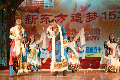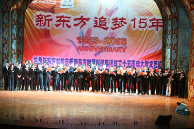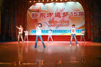 11月14日20:00,兰州新东方庆祝新东方成立十五周年大型文艺晚会在长征剧院隆重举行。共青团甘肃省委副书记张旭晨、城关区教育局局长张军、副局长高岭、兰州新东方全体教职员工及其家属、新东方学员、金城各大媒体代表等1000余人参加了晚会。