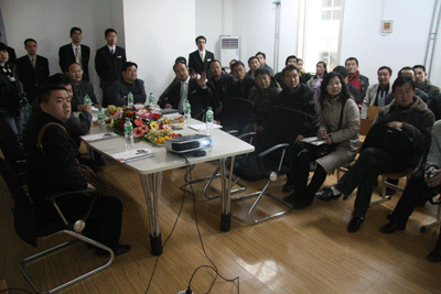 参观结束后,西宁市城中区教育局的各位领导与城关区教育局领导、兰州新东方学校员工代表进行了座谈。孔建龙校长首先代表兰州新东方学校再次对刁玉柱局长以及西宁教育界同仁们的到来表示热烈的欢迎。接着,大家一起观看了视频短片《我们的兰州新东方》。视频详细记录了兰州新东方学校自2月13日以来,从筹建、开业到发展的全过程,展示了兰州新东方在师资队伍、团队建设、课程设置、市场推广、社会公益活动等方面取得的阶段性成绩。孔建龙校长还补充介绍说,兰州新东方的生源不仅来自兰州,还包括了省内其它地区,影响力甚至波及到了青海、宁夏两省区。每逢周末,就有不少西宁学子来到兰州新东方学习,这种精神令人非常感动。