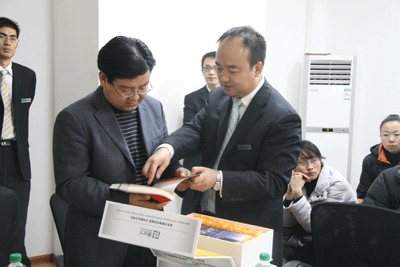 座谈会结束时,孔建龙校长向来自西宁城中区教育局的领导和所有贵宾们赠送了俞敏洪老师亲笔签名的精美套装图书礼盒。刁玉柱局长高兴地接受了礼物,并代表全体随行人员向新东方表达了真挚的谢意。