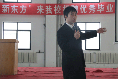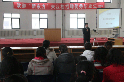 12月1日,“2008年度新东方泡泡少儿英语宣讲会兰州站”正式启动,新东方教育科技集团POP少儿英语教学督导苏颖昕老师亲临兰州,并和兰州新东方教学管理部主管温泉老师一起,于12月1日、2日分别走进西北师范大学和兰州城市学院进行招聘宣讲。