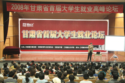 12月17、18日,“甘肃省首届大学生就业论坛”分别在兰州城市学院音乐厅、西北民族大学本部大礼堂隆重开讲,这无疑给面临巨大就业压力、在绝望中寻找希望的广大甘肃应届大学毕业生提供了明确方向、树立信心的良好契机。此次活动由共青团甘肃省委、甘肃省青年企业家协会、甘肃省学联、兰州新东方学校联合主办,兰州城市学院团委与西北民族大学团委共同承办,来自甘肃十余所高校的毕业生参加了本次论坛。新东方教育科技集团人力资源总监、人力资源管理专家刘文忠老师作为本次论坛的主讲嘉宾,就当前就业形势分析、职业规划、面试技巧等大家关心的话题展开深入探讨。兰州新东方学校校长孔建龙主持本次论坛。