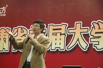 在谈到新东方的企业文化时,刘文忠老师用“激情,民主,坚持,学习创新”作了概括,这些都是保证车轮上的新东方15年来始终保持活力、健康、快速发展的重要动力,同时也是新东方吸引人才、培养人才的重要标准。