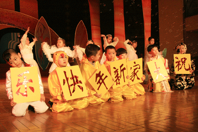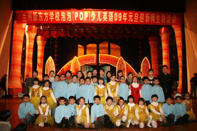 2009年1月1日14:00,兰州新东方POP少儿英语部迎新年师生联谊会在长征剧院隆重举行,泡泡少儿英语的老师以及小学员们准备了精彩的文艺节目,与家长们欢聚一堂,度过了一个欢乐、多彩的新年。共青团甘肃省委副书记柳鹏、兰州新东方学校校长孔建龙以及800多名学员家长参加了此次联谊会。