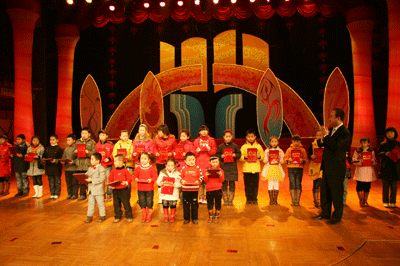 演出中间还进行了隆重的抽奖仪式。共青团甘肃省委副书记柳鹏上台抽取了3位现场幸运观众,为他们颁发了精美的礼品并合影留念。此外,兰州新东方学校校长孔建龙也为在2008年兰州新东方POP感恩、创卫、价值教育等一系列活动中,分别获得“感恩征文明星学员”、“创卫小卫士”、“价值教育形象代言人”等奖项的小学员们颁发了证书和奖品。