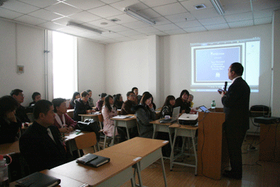 首场培训由兰州新东方学校校长孔建龙担纲,主要讲解新东方十五年历史发展以及兰州新东方学校发展历程。