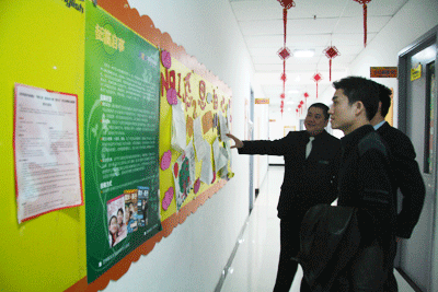 在校长办公室副主任朱凯老师的陪同下,吴民国校长首先参观了兰州新东方学校的校区建设。整洁的教学环境、独特的文化宣传、激情的教师授课,这一切引起了吴民国校长的交口夸赞。