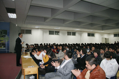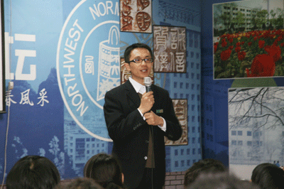 3月4日晚,兰州新东方学校2009年甘肃高校春季大型公益巡讲活动拉开帷幕,明星教师范亚飞、江阳走进西北师范大学,为同学们带去一场激情四射的公益讲座。