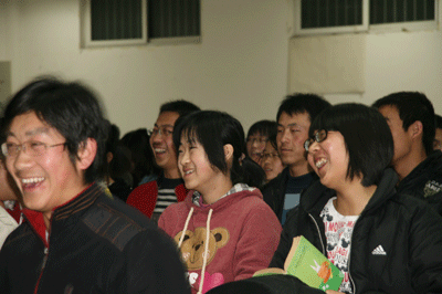 整个演讲过程中两位老师把新东方的幽默教学、愉快学习、调侃文化等特有魅力表现得淋漓尽致。同学们也被两位名师幽默的语言、生动的案例、丰富的肢体语言折服,台下不时传出阵阵掌声与笑声,在欢笑中大家愉快地体验了新东方的独特教学魅力——让你在轻松幽默的同时满载而归。