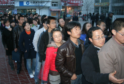 兰州新东方为师大学子准备了丰富的考研资料,闻讯而来的学生早早就等在了讲座大厅门口,都想早一分钟看到期盼已久的学习书籍。车子刚停稳,很多学生就围了上来,帮助新东方的工作人员搬运书籍等学习资料。7:00整,离讲座开始还有半小时时间,已经有数百名同学围在了新东方工作人员周围,一时间给师大造成了小小的“交通阻塞”。由于人数过多,原本定于讲座结束后发放的资料,不得不提前发放,有几位同学自告奋勇,主动组织后面的同学排起了队伍。