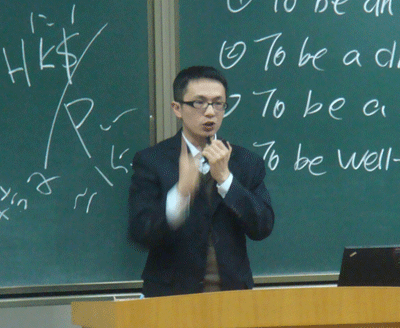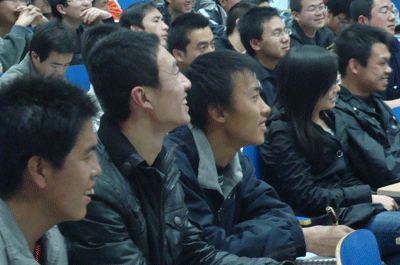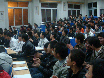 曾几何时,英语四、六级考试已成为很多大学生英语学习中一道难过的坎,改革后考试难度有增无减,迫于这种形势,许多同学被迫很早就着手准备复习。因此,在得到讲座的消息后,不少同学早早就在讲座大厅门前等候。傍晚七点三十分演讲厅里已经座无虚席。在兰州新东方市场推广部主管谷峪老师简短的介绍后,主讲四、六级听力考试应试方略的江阳老师在热烈的掌声中走上讲台。最初听到江阳老师的名字不免把他与“大盗”联系。实则不然,江阳老师长得酷似国宝熊猫,属于“被盗”的类型……在一个小时的讲座里江阳老师从自身学习英语的经历开始,阐述了四、六级英语听力学习考试的发展趋势和学习方向,生趣幽默的语言,丰富的经验和犀利的智慧让在场的同学在轻松的欢笑声中感受到新东方老师的独特魅力。