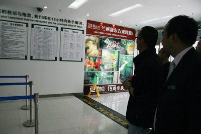 走进宽敞明亮的报名大厅,俞敏洪老师首先看到了在报名信息栏上的“您的抱怨与投诉,我们将在12小时内予以解决”的字样,详细了解了兰州学校的客户服务工作。当得知这是学校落实08年短语系统西宁会议精神,提升客户服务质量的重大举措,并以客户为中心,全力解决家长、学员反应问题后,俞敏洪老师说,客户的意见是新东方发展的动力,学校要高度重视客户投诉意见和建议,让学员、家长来到新东方尽可能多的满意。兰州新东方敢于倾听客户意见,改善工作服务,这种做法很好,值得推广。