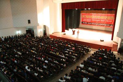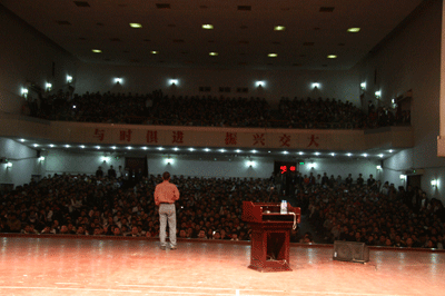 当俞敏洪老师走上讲台,全场立即沸腾了起来,热情的掌声欢呼声潮水般持续了两分多钟。俞敏洪在谈及大学生创业时,不鼓励大学生一毕业就开始创业,而应该先就业、再创业。大学生由于缺乏对社会的深刻了解,很难在一毕业就创业成功,而应该在就业的过程中不断增强工作能力,不断积累社会经验,为创业做准备。俞敏洪老师还结合自己创业的经历,强调作为创业者,一定要懂得与他人分享。一个不懂得与他人分享的创业者,不可能将事业做大。“我们最愚蠢的行为就是太执著于自己的东西,把自己的东西捏着不放,不愿意放弃”,“新东方就是这样,我把我所有的东西跟大家分享,换来大家对我的信任,和我一起创业。”最后,俞敏洪老师鼓励大学生要像树一样成长,能给人带来一片绿色、一片荫凉。