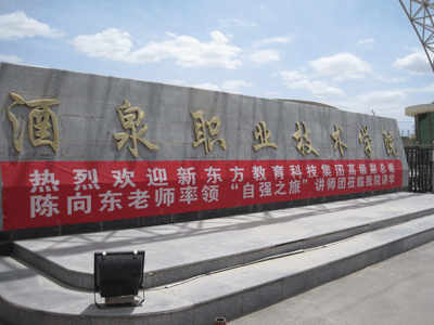 在结束酒泉的讲座后,原本要连夜赶赴张掖的自强之旅名师演讲团被热情的共青团酒泉市委书记朱建军强行挽留。“天若不爱酒,酒星不在天。地若不爱酒,地应无酒泉。”朱书记引用李白的诗歌,一席话使得演讲团不得不取消来原计划。晚上,大家一起探讨酒泉经济建设,畅谈西部教育,无不尽兴而归。朱建军书记代表酒泉百姓,诚挚地邀请新东方尽快进驻酒泉,为河西地区教育水平提升做贡献。