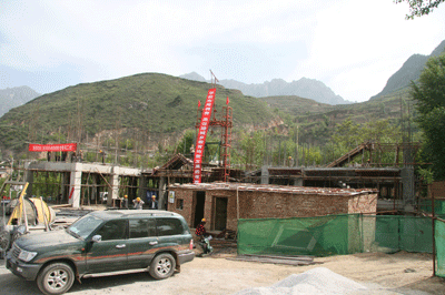 正在紧张施工的新东方抗震希望小学教学楼一楼框架结构已经完成,建筑已经初具雏形。整个教学楼按照八级抗震标准建造。工程预计在今天九月份竣工,石家山及周边几个村庄的孩子们将在新学期到来的时候入住新楼。