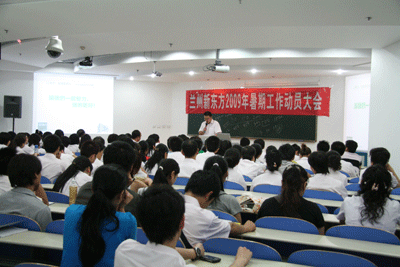 7月8日晚九点整,在结束了一整天忙碌的暑期招生报名工作后,兰州新东方学校2009暑期工作动员大会在中山路教学区拉开帷幕。兰州新东方学校校长孔建龙、各行政、教学、产业部门以及各学区主管及相关负责人等在内的160余名教职员工参加了本次大会。