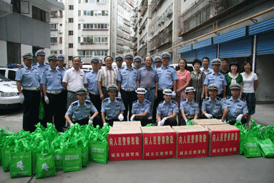 7月29日下午,兰州新东方学校携手兰州市城关区教育局,在城关区交警大队张欣队长的陪同下,对坚守兰州市各主要路段工作岗位的交警进行了慰问。城关区教育局局长张军、党组书记李锡忠、兰州新东方学校校长孔建龙以及城关区部分小学校长、兰州新东方部分主管参加了慰问活动。