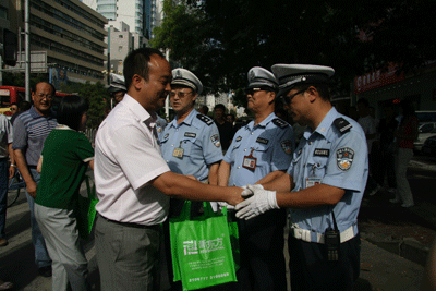 慰问结束后,城关区教育局、城关区交警大队、兰州新东方学校进行了座谈。座谈会上,孔建龙校长在发言中讲到,城市交通是兰州城市文明的形象、窗口,兰州交警始终把维护交通秩序、方便市民生活摆在工作的首要位置,为确保交通畅通、塑造文明形象付出了辛勤汗水,做出了积极贡献。最近以来,天气持续高温,兰州又迎来了旅游旺季,交警的特勤任务十分繁重,但交警始终战斗在一线,克服了难以想象的困难,战胜了持续高温的影响。正是你们的辛劳,换得了城市的和谐、安宁、有序。今天,新东方的同志们携手兰州城关教育一同走到一线慰问交警,一是想通过自己的实际行动践行文明出行的诺言,二是希望广大交警继续发扬特别能吃苦、特别能战斗、特别能奉献的精神,努力做好各项工作,确保城市畅通有序。三是想通过慰问活动,呼吁广大市民群众,自觉遵守交通法规、自觉维护交通秩序,做到文明驾驶、文明出行。市民群众多一份自觉守规,公安交警就能少一份辛劳奔波,多一份清凉温馨,这也是一个兰州文明市民应有的素质。