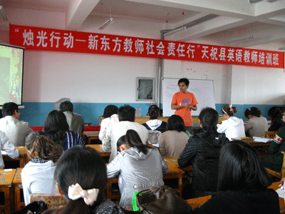 参加培训的老师都对本次培训给予了较高评价,认为本次培训无论是授课形式还是内容结构都比较科学,能够从中学习到很多解决课堂实际问题的方式与方法。在小学组班上,天祝县城关小学的李明良老师说:“以前给学生讲得很多东西,尤其在语音方面存在着一些错误,通过这次培训才得以发现,才学习到了解决的办法”。尹文生老师说:“新东方善于运用技巧教学,阐述理论深入浅出,通俗易懂,游戏教学,寓教于乐,这几天的收获真不少”。