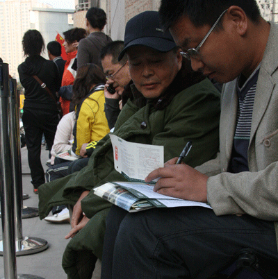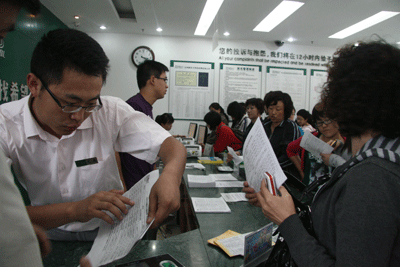 上午8:30,活动正式开始。兰州新东方学校的工作人员按照家长们的排队顺序,分别将印有优惠额度的卡片分发到每一位家长手中。