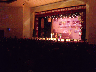 9月27日晚,兰州大学榆中校区的大礼堂一片欢声笑语,从走进会场同学洋溢着发自内心的笑容就能看出,今晚是个喜庆并值得永远纪念的日子。没错,这是兰州大学管理学院以“百年礼赞,薪火延绵”为主题,庆贺兰州大学一百周年暨09迎新生晚会的现场。晚会在热情四溢的歌舞中拉开了序幕。