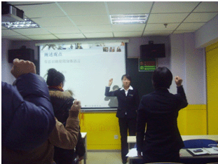 19:30活动正式开始。刚从新东方教育集团培训归来的我校优秀员工阚晓燕老师就自己在集团培训时所学到的沟通技巧和一些工作中的实际感受向大家作了详尽的讲解。晓燕老师首先与大家共同分析了一些优秀主管在工作中取胜的经典案例,通过分析让大家明白,想要在工作中取胜,就必须做到尽责任、不抱怨。晓燕老师还告诉大家一个成功秘诀:“简单的事情简单做,简单的事情使劲做,简单的事情反复做。”接着晓燕老师详细讲解了如何有效地与人沟通以及在沟通中遇到问题该如何处理,并通过丰富的互动游戏,让大家深刻地体会到了沟通的重要性。最后,晓燕老师对团队精神的重要性进行了分析讲解,使大家认识到团队对自己的重要性,自己对团队的重要性,只有大家共同发展,我们才能一起走的更远。