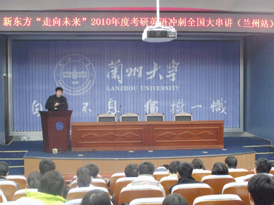 时至年末,2010年度考研战役在即。12月22日,新东方“走向未来”考研巡讲兰州站在兰州大学、兰州交通大学、兰州城市学院隆重举行。兰州三大高校的数百名考研学子齐聚一堂,为梦想奋战。
