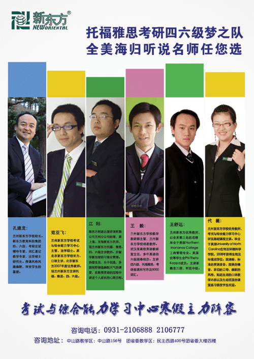 您好,欢迎来到兰州新东方学校! 咨询电话 : 0931-2106777 0931-2106888 新东方教育科技集团|泡泡少儿教育|English